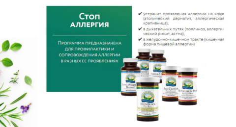 Успешно противодействовать аллергии различных форм реально, используя фитопродукты и пищевые продукты, противоаллергические свойства которых доказаны сотнями исследований. Новый комплекс «СТОП АЛЛЕРГИЯ» состоит из 6-ти продуктов компании NSP: