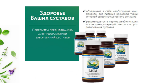 Setul "Sănătatea articulațiilor tale" de la compania Nature's Sunshine se referă la astfel de complexe, acțiunea activă a componentelor cărora vizează nutriția naturală a țesuturilor ligamentelor și a aparatului articular și a țesuturilor cartilaginoase.